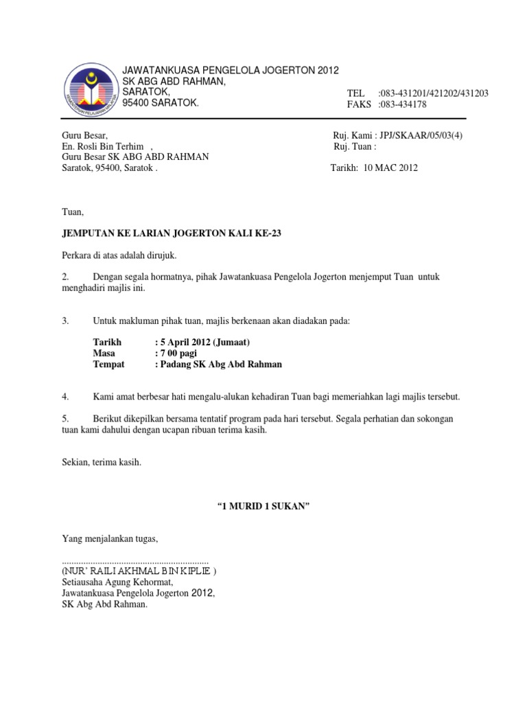 Surat Jemputan Kepada Pengerusi Program Pdf